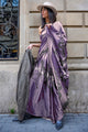Women's Satin Purple Printed Designer Saree With Blouse Piece