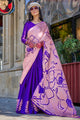 Women's Satin Purple Printed Designer Saree With Blouse Piece