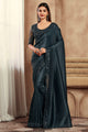 Women's Satin Silk Black Embellished Designer Saree With Blouse Piece