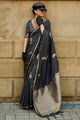 Women's Satin Silk Black Woven Design Designer Saree With Blouse Piece