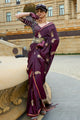Women's Satin Silk Burgundy Woven Design Designer Saree With Blouse Piece