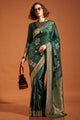 Women's Satin Silk Dark Green Woven Design Designer Saree With Blouse Piece