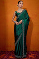 Women's Satin Silk Green Embellished Designer Saree With Blouse Piece