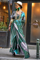 Women's Satin Silk Green Printed Designer Saree With Blouse Piece