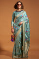 Women's Satin Silk Light Blue Woven Design Designer Saree With Blouse Piece