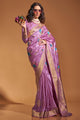 Women's Satin Silk Mauve Woven Design Designer Saree With Blouse Piece
