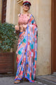Women's Satin Silk Multicolored Printed Designer Saree With Blouse Piece