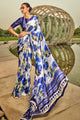 Women's Satin Silk Off White Printed Designer Saree With Blouse Piece