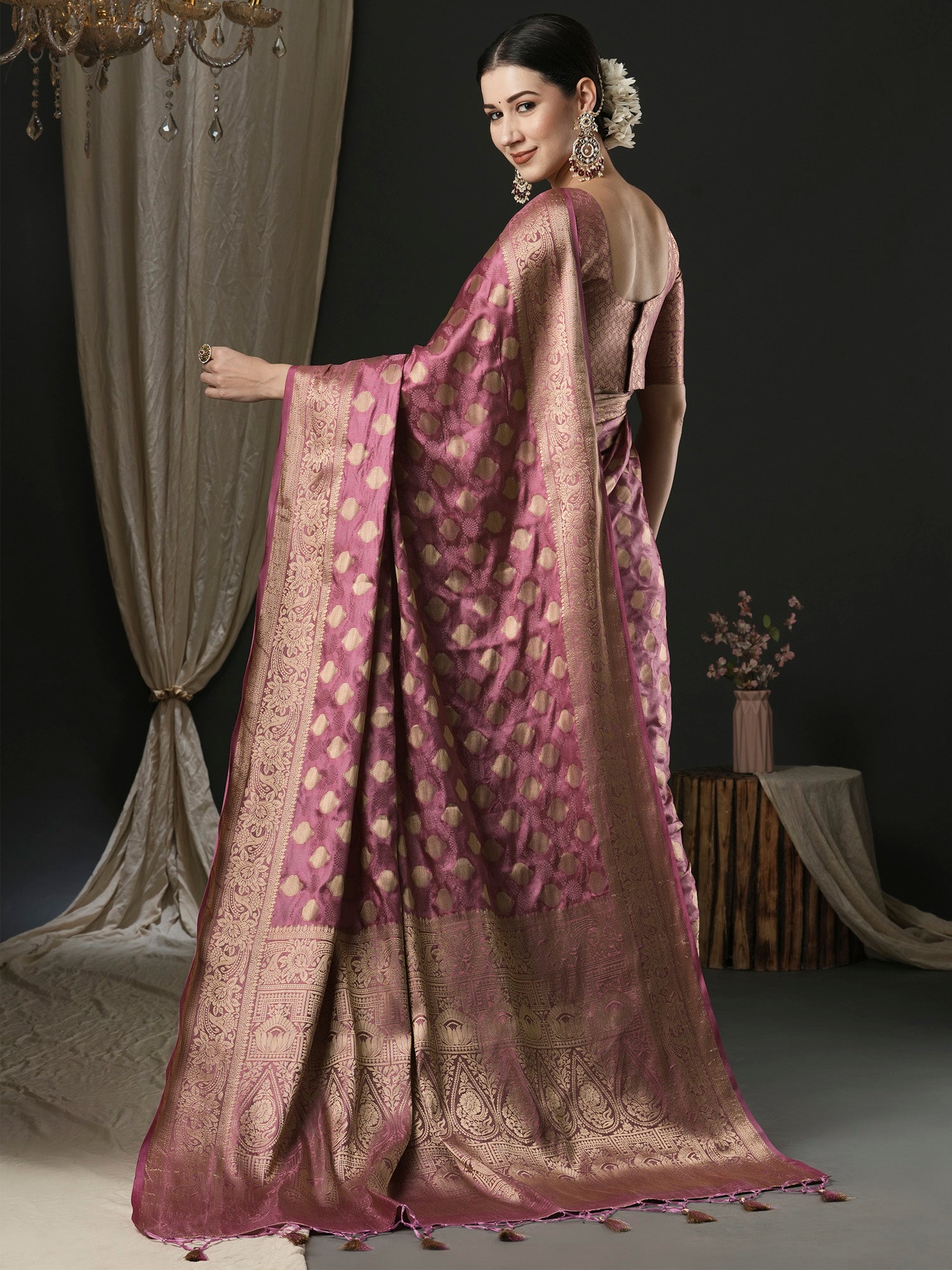Women's Satin Silk Pink Woven Design Designer Saree With Blouse Piece