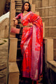 Women's Satin Silk Red Woven Design Designer Saree With Blouse Piece