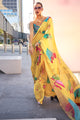 Women's Satin Silk Yellow Printed Designer Saree With Blouse Piece
