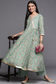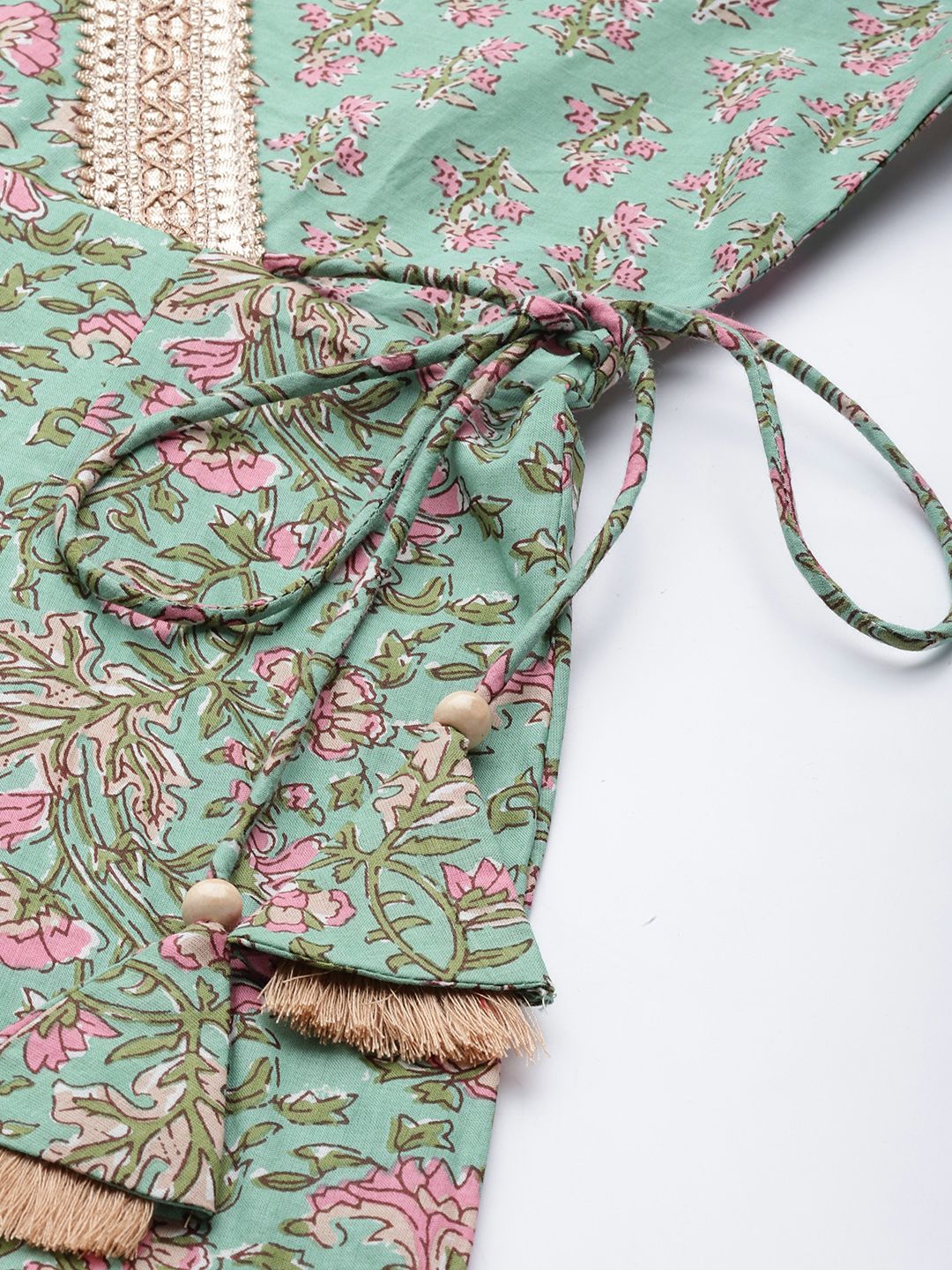Dhiyona VA Women's Sea Green Floral Printed Angrakha Pure Cotton Kurta with Palazzos