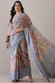 Women's Silk Blend Beige Printed Designer Saree With Blouse Piece
