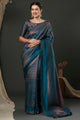 Women's Silk Blend Blue Woven Design Designer Saree With Blouse Piece