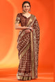 Women's Silk Blend Brown Printed Designer Saree With Blouse Piece