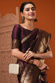 Women's Silk Blend Burgundy Woven Design Designer Saree With Blouse Piece