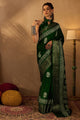 Women's Silk Blend Green Printed Designer Saree With Blouse Piece