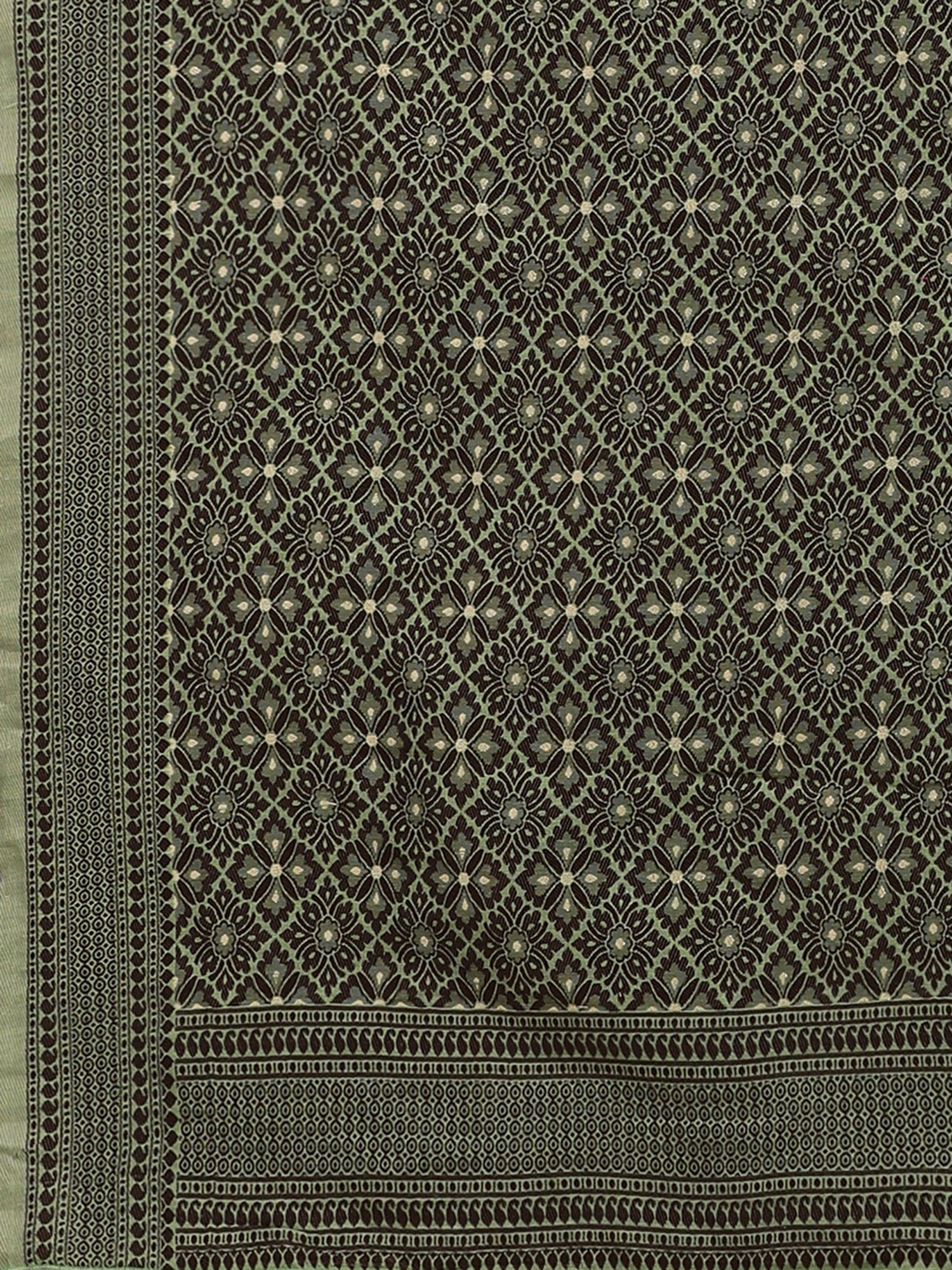 Women's Silk Blend Green Woven Design Designer Saree With Blouse Piece