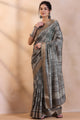 Women's Silk Blend Grey Printed Designer Saree With Blouse Piece