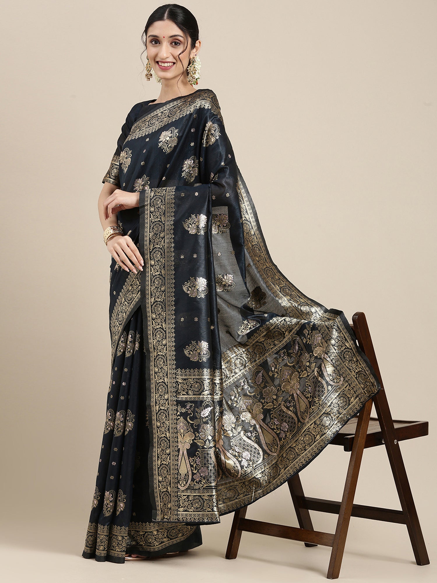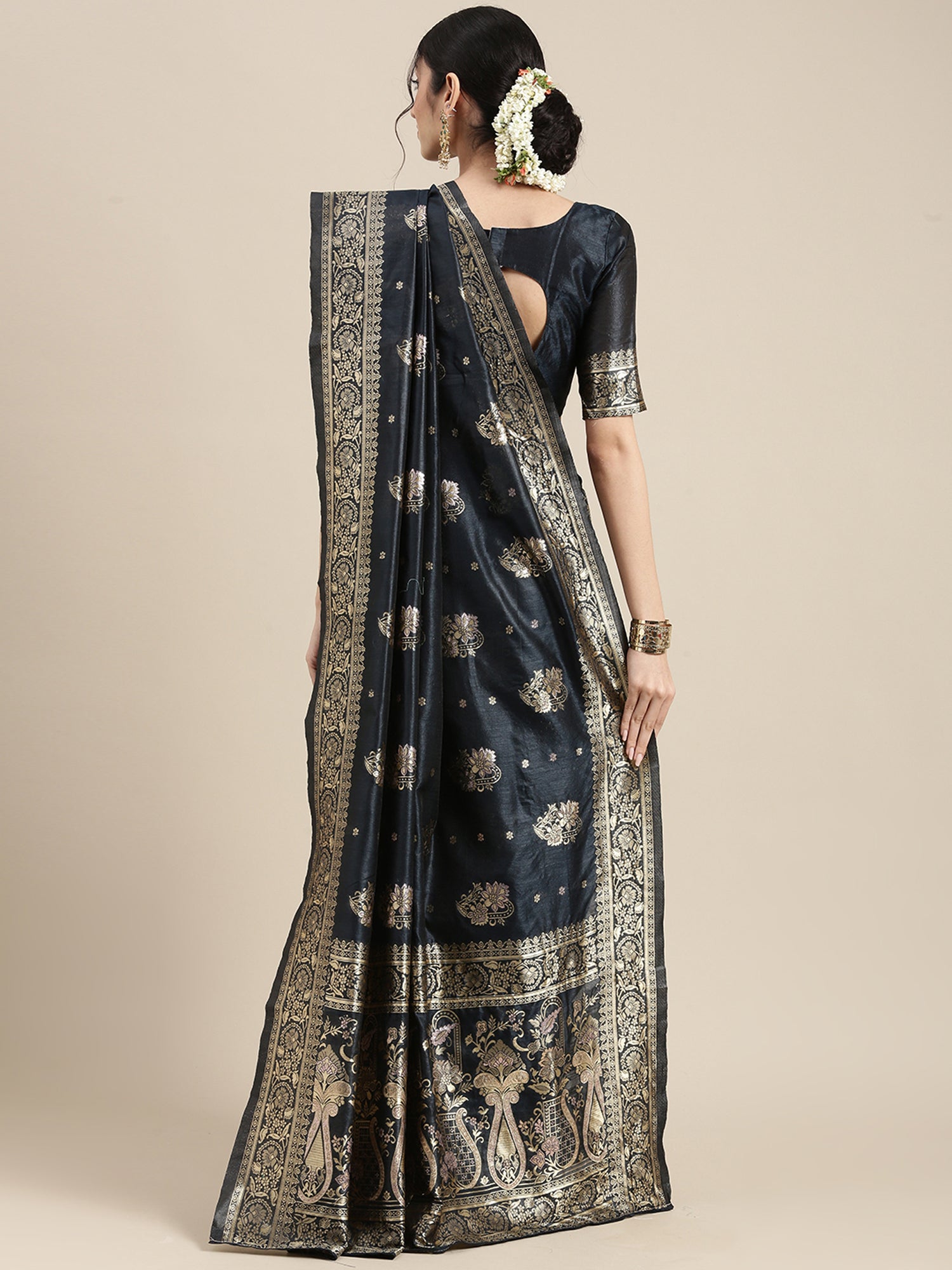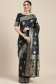 Women's Silk Blend Grey Woven Design Celebrity Saree With Blouse Piece