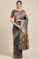 Women's Silk Blend Grey Woven Design Designer Saree With Blouse Piece