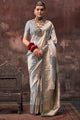 Women's Silk Blend Grey Woven Design Designer Saree With Blouse Piece