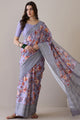 Women's Silk Blend Lavendar Printed Designer Saree With Blouse Piece