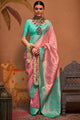 Women's Silk Blend Light Blue Woven Design Designer Saree With Blouse Piece