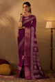 Women's Silk Blend Magenta Printed Designer Saree With Blouse Piece