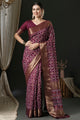 Women's Silk Blend Magenta Woven Design Designer Saree With Blouse Piece