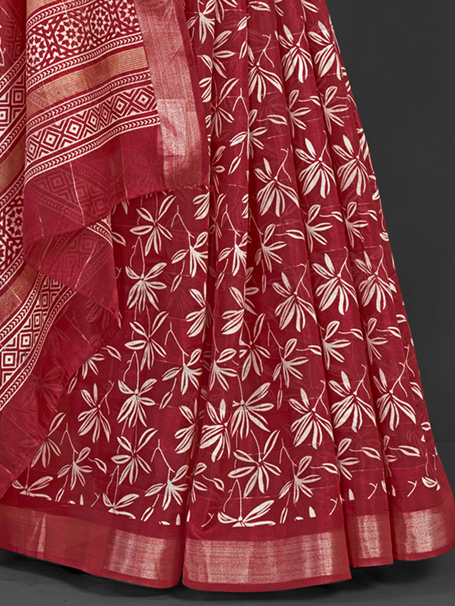 Women's Silk Blend Maroon Printed Designer Saree With Blouse Piece
