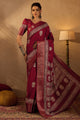 Women's Silk Blend Maroon Printed Designer Saree With Blouse Piece