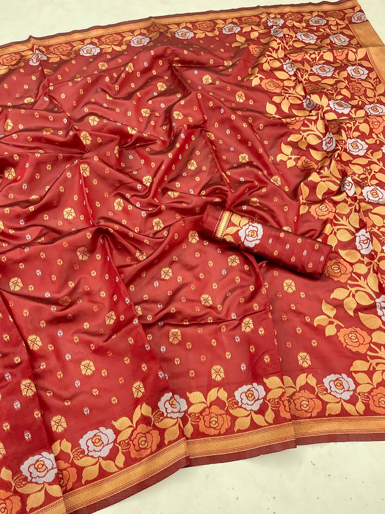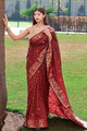 Women's Silk Blend Maroon Woven Design Designer Saree With Blouse Piece