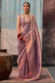 Women's Silk Blend Mauve Woven Design Designer Saree With Blouse Piece