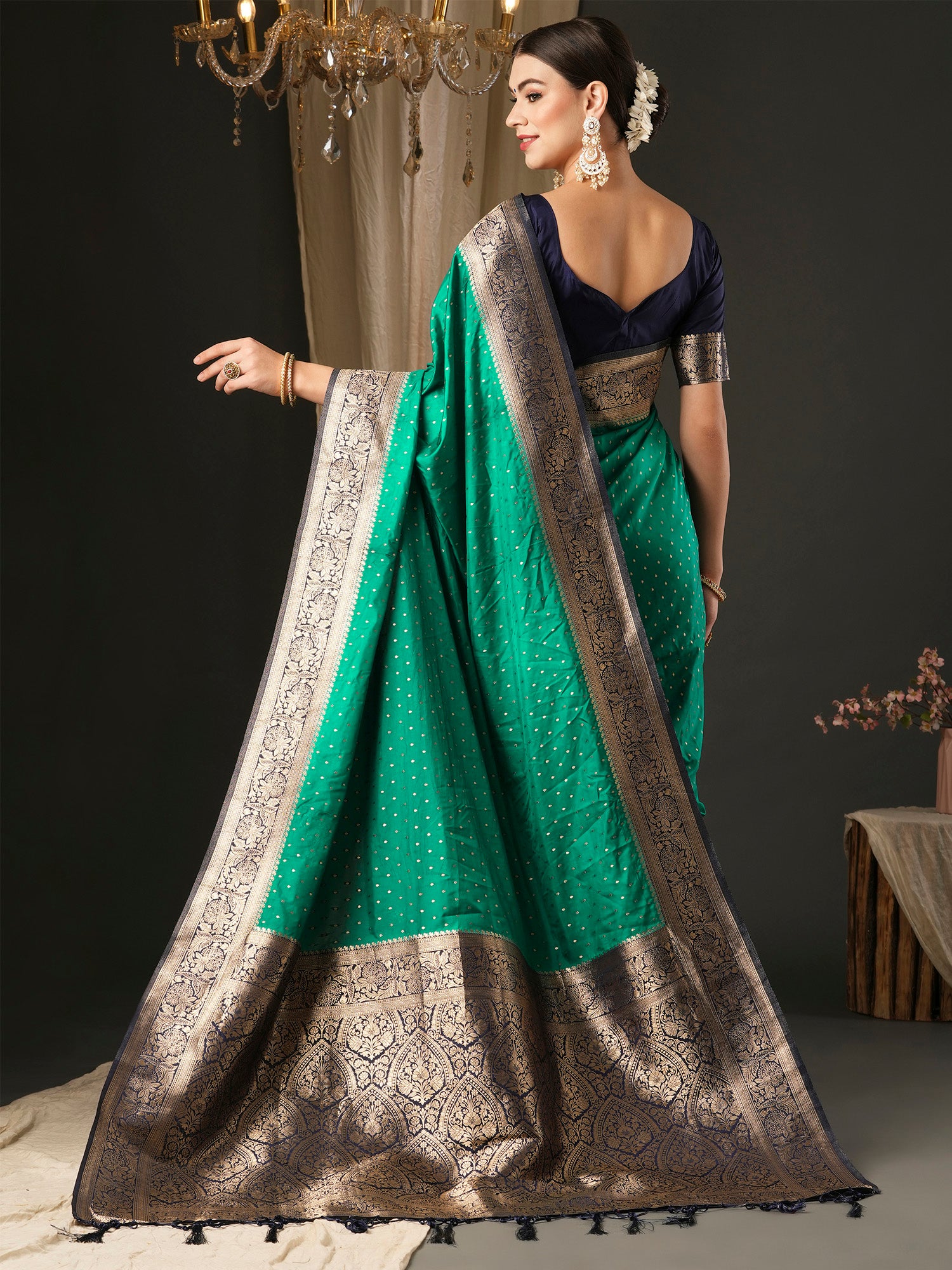 Women's Silk Blend Navy Blue Woven Design Designer Saree With Blouse Piece