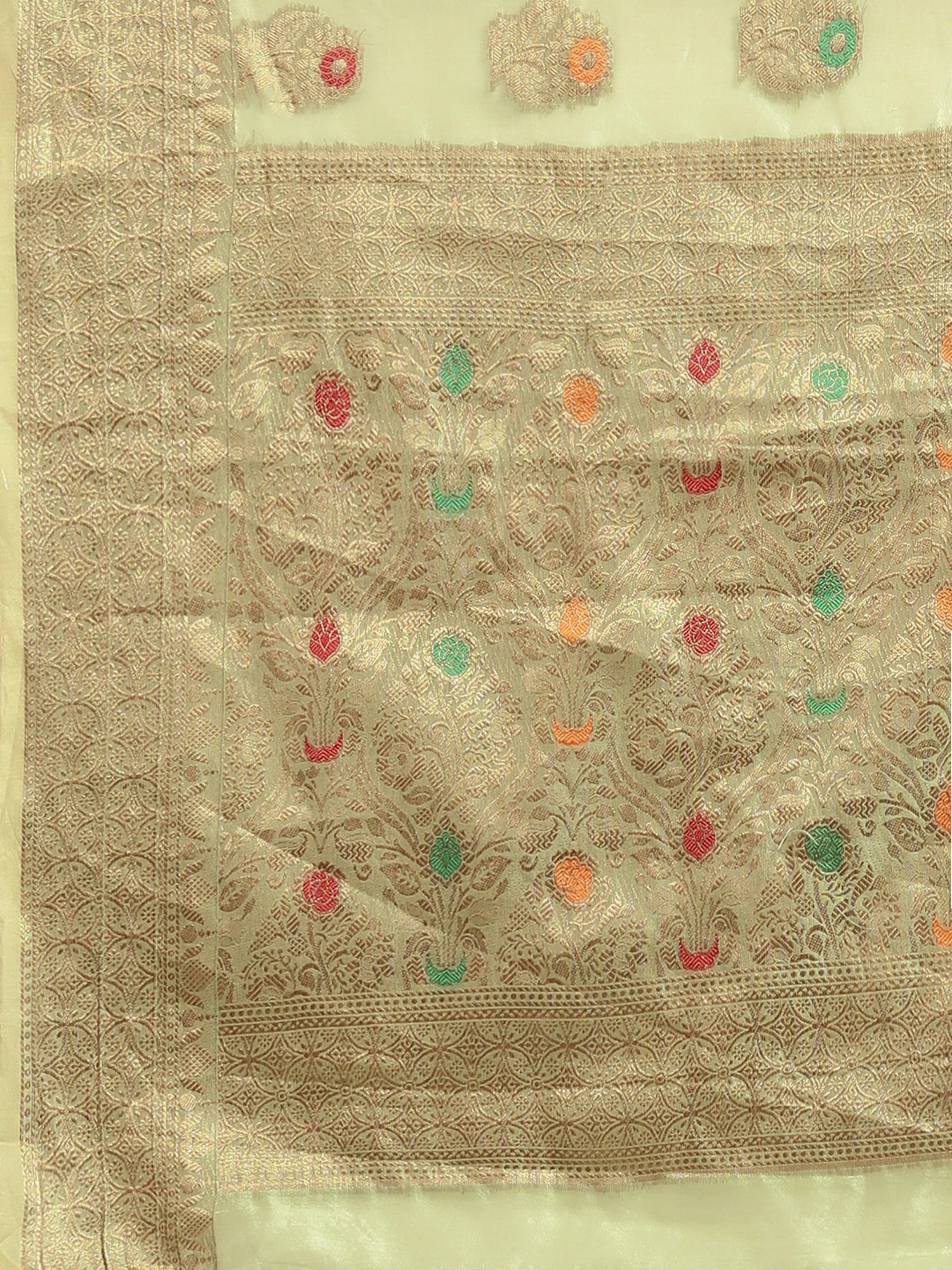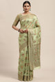 Women's Silk Blend Olive Woven Design Designer Saree With Blouse Piece