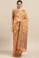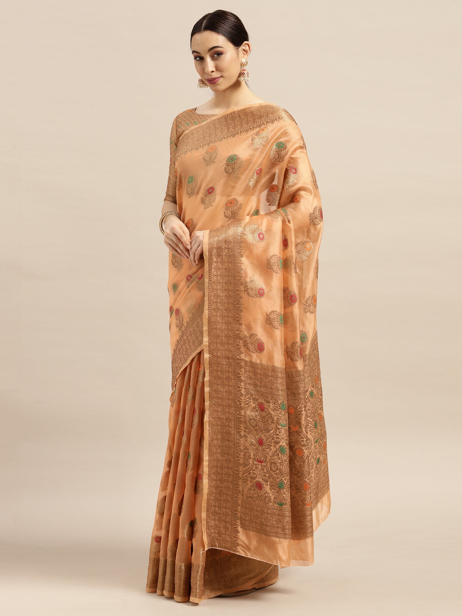 Women's Silk Blend Orange Woven Design Designer Saree With Blouse Piece