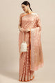 Women's Silk Blend Peach Woven Design Designer Saree With Blouse Piece