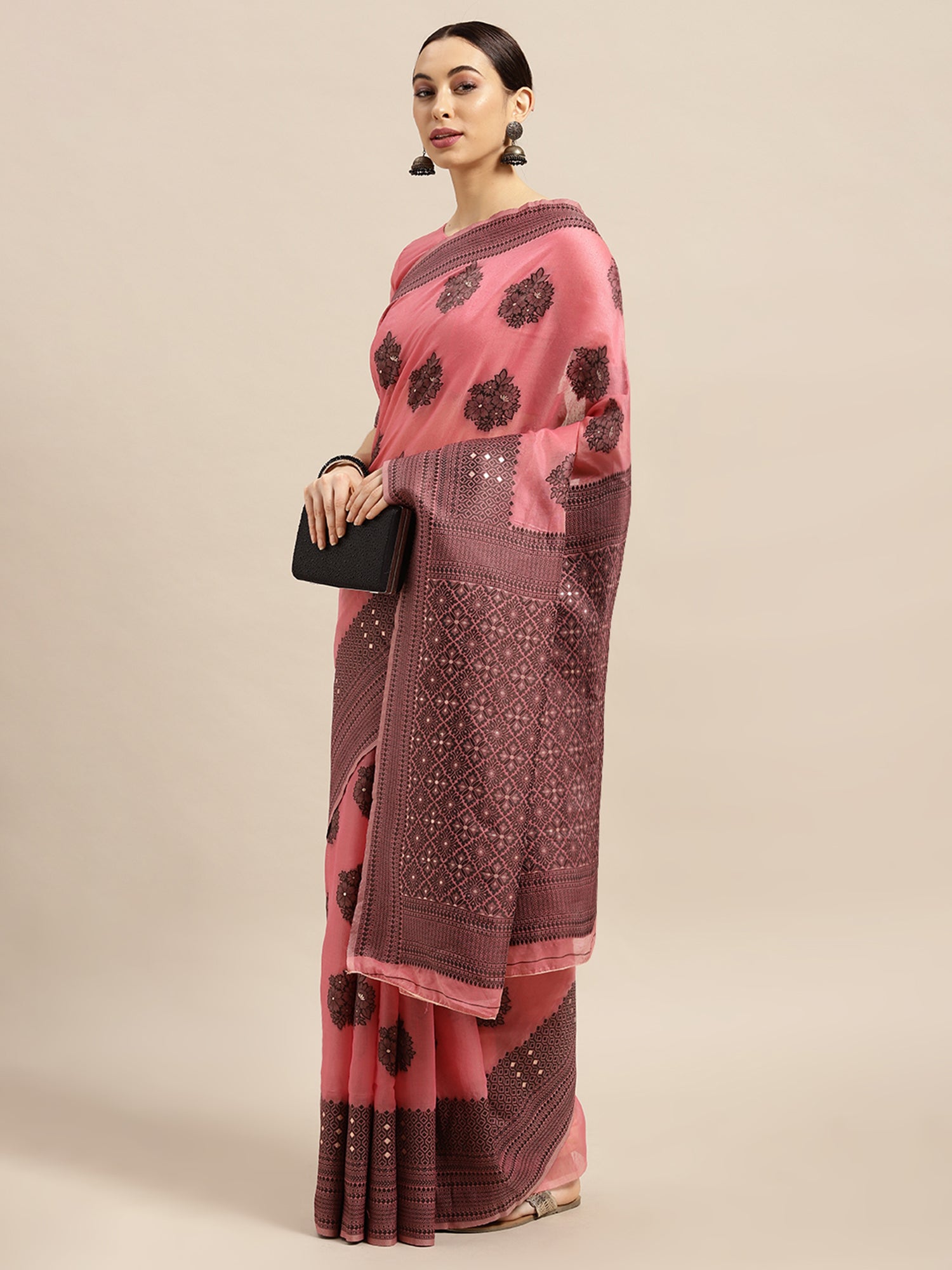 Women's Silk Blend Pink Woven Design Designer Saree With Blouse Piece