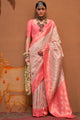 Women's Silk Blend Pink Woven Design Designer Saree With Blouse Piece