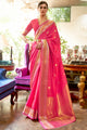 Women's Silk Blend Pink Woven Design Handloom Saree With Blouse Piece