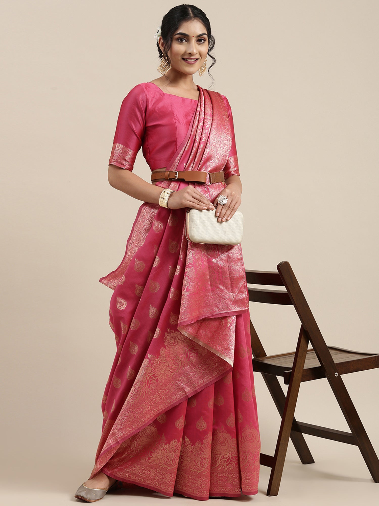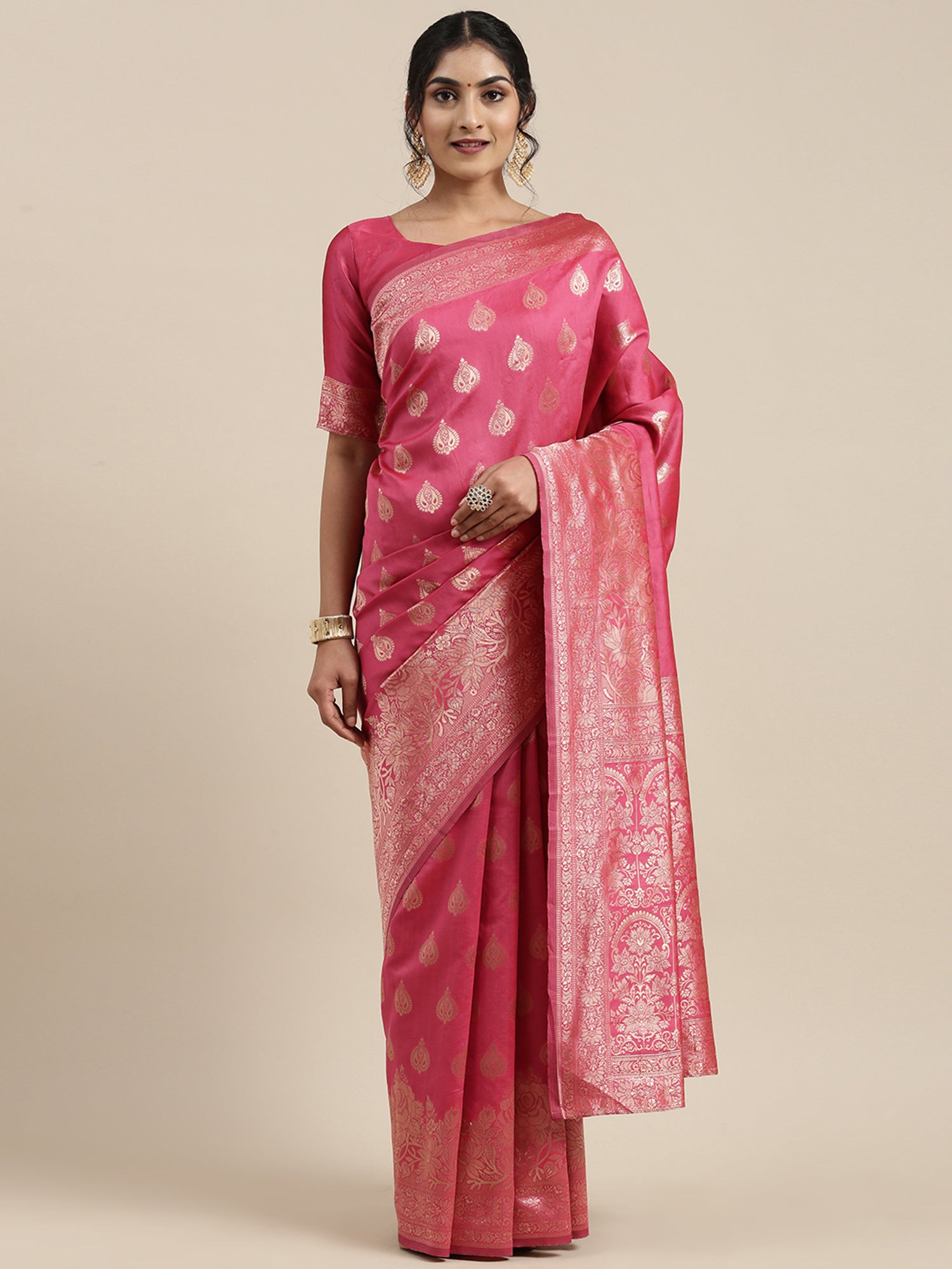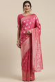 Women's Silk Blend Pink Woven Design Woven saree With Blouse Piece