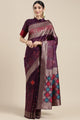 Women's Silk Blend Purple Woven Design Designer Saree With Blouse Piece