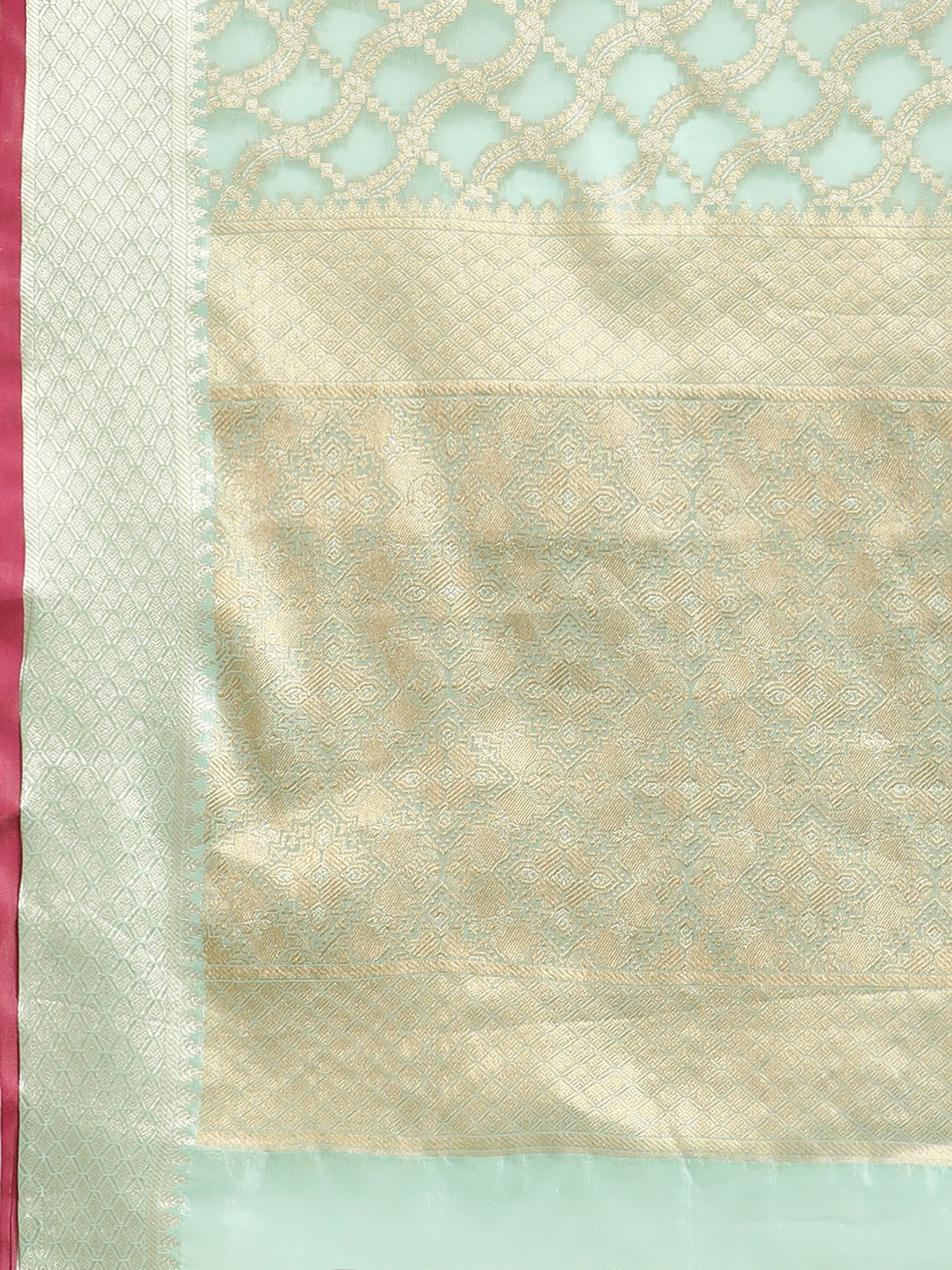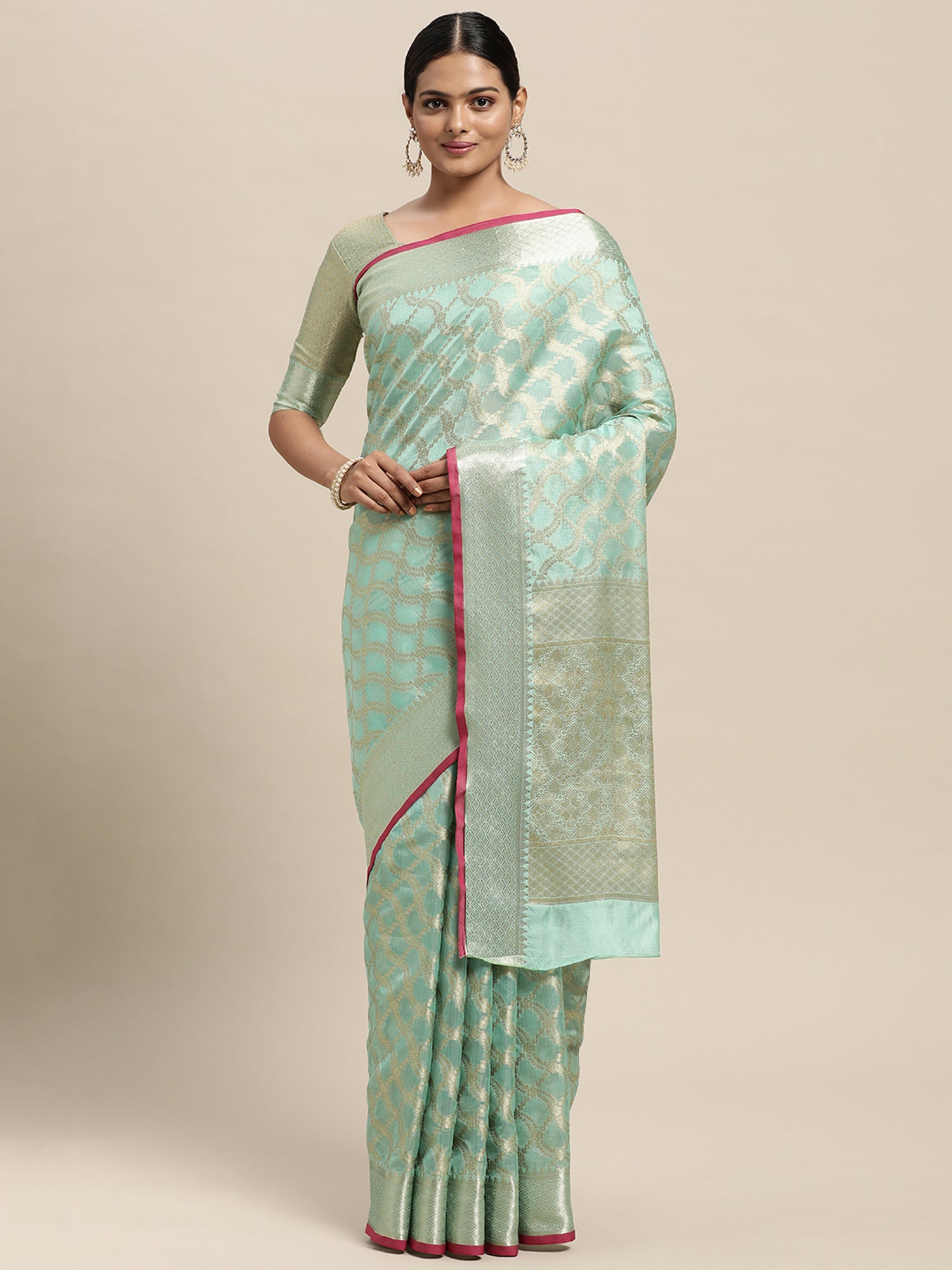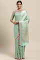 Women's Silk Blend Sea Green Woven Design Designer Saree With Blouse Piece