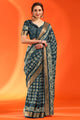 Women's Silk Blend Teal blue Printed Designer Saree With Blouse Piece