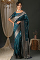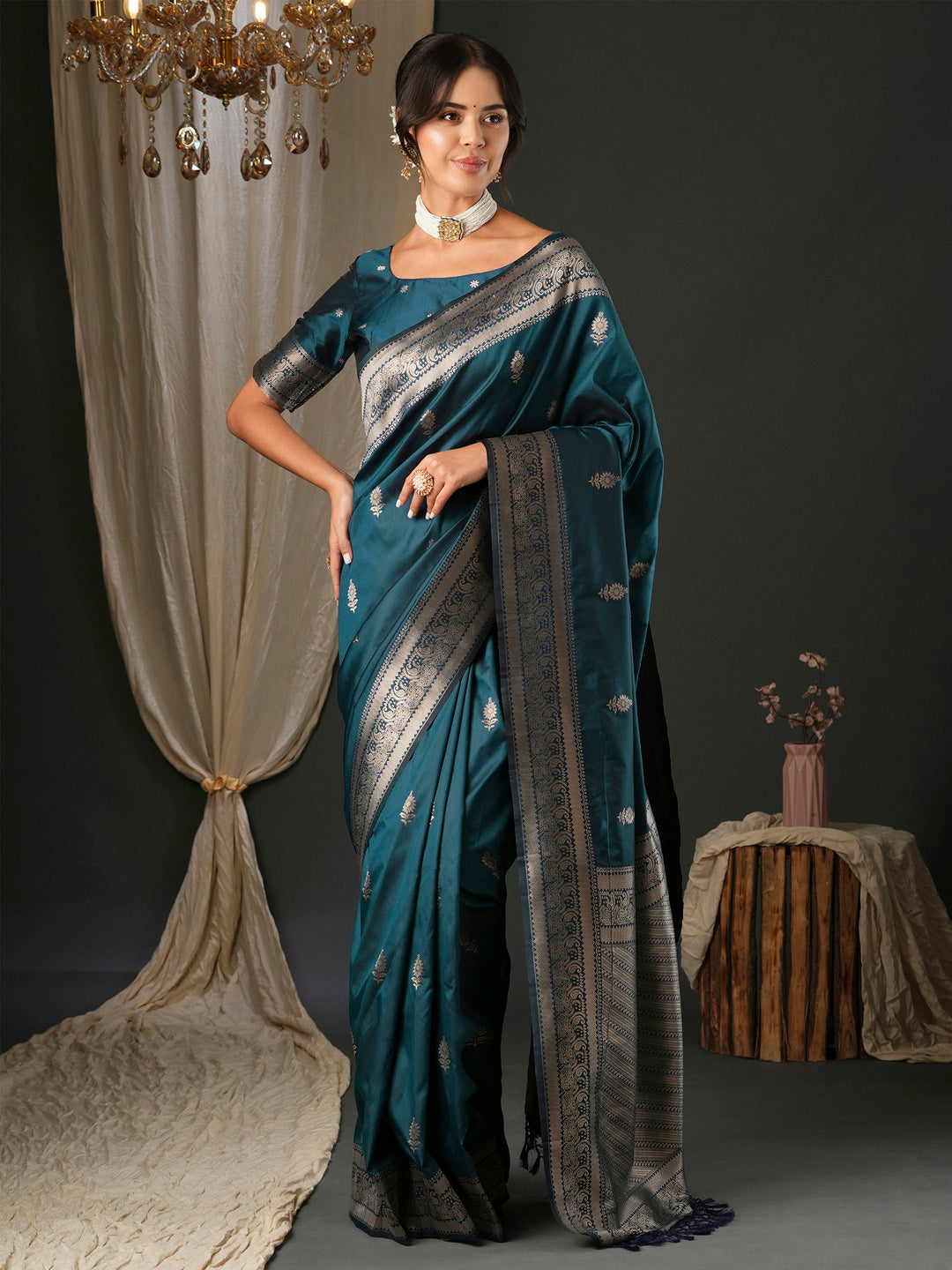 Women's Silk Blend Teal blue Woven Design Designer Saree With Blouse Piece