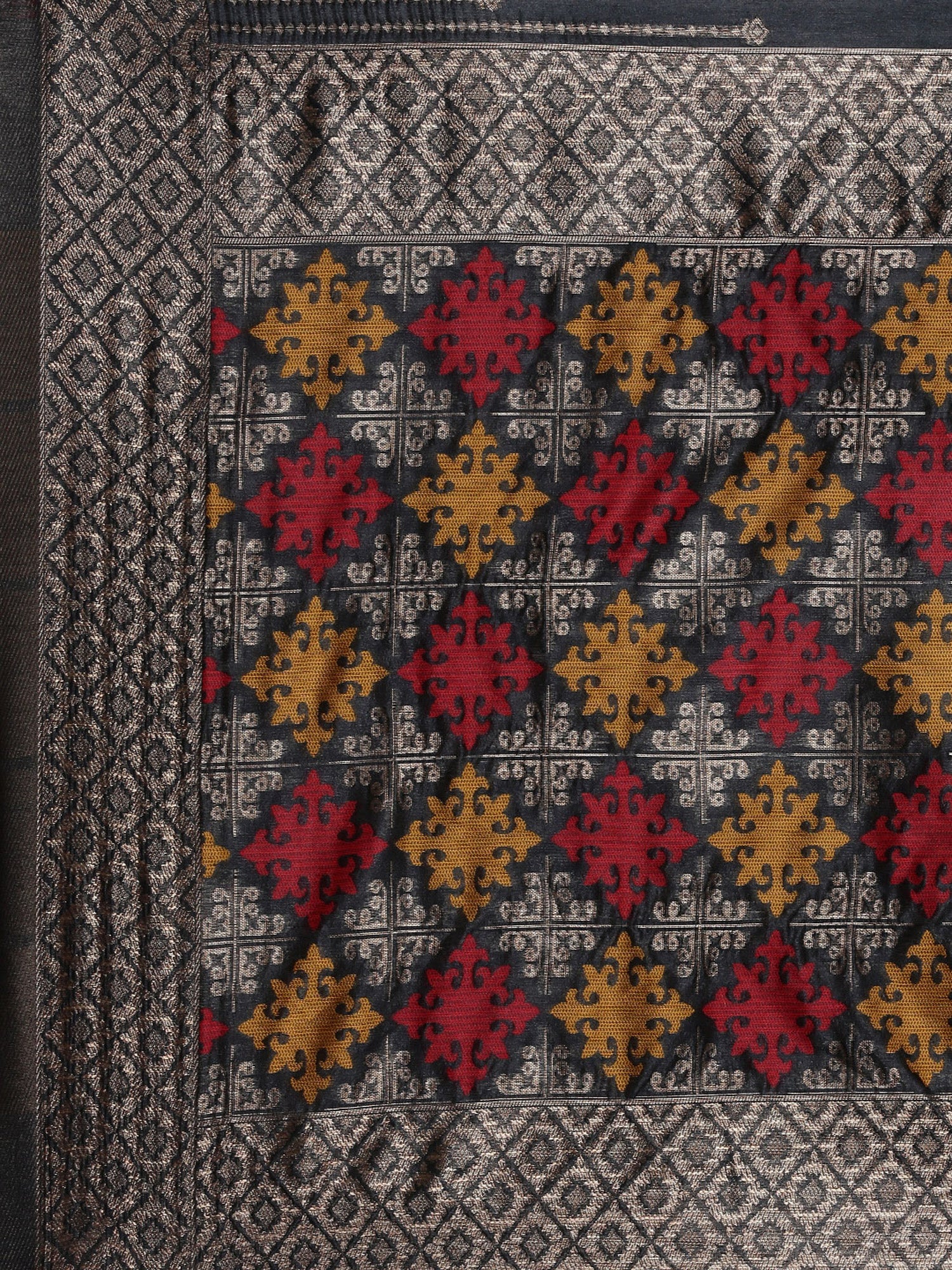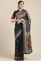 Women's Silk Blend Teal blue Woven Design Designer Saree With Blouse Piece