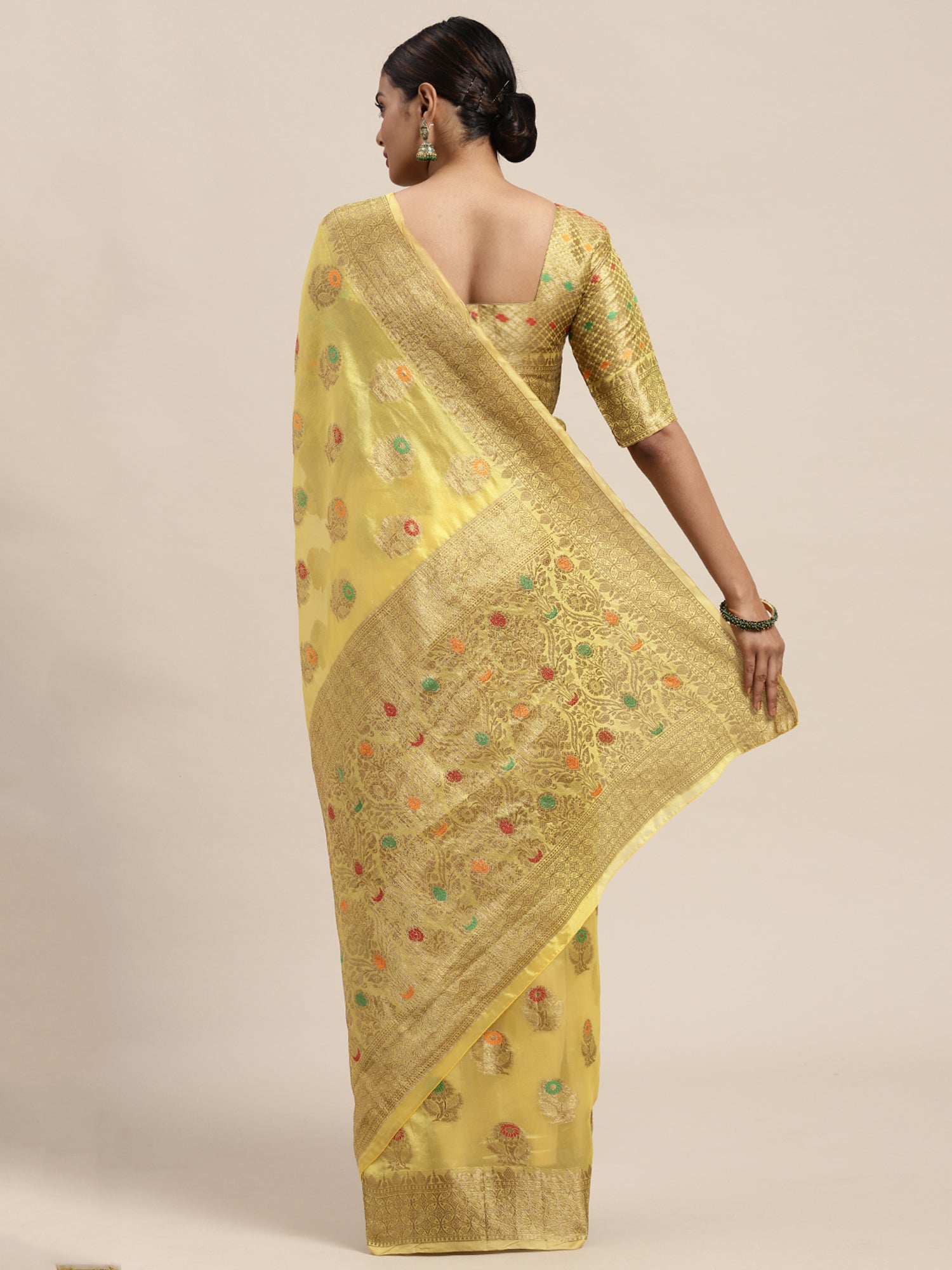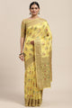 Women's Silk Blend Yellow Woven Design Designer Saree With Blouse Piece