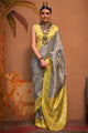 Women's Silk Blend Yellow Woven Design Designer Saree With Blouse Piece