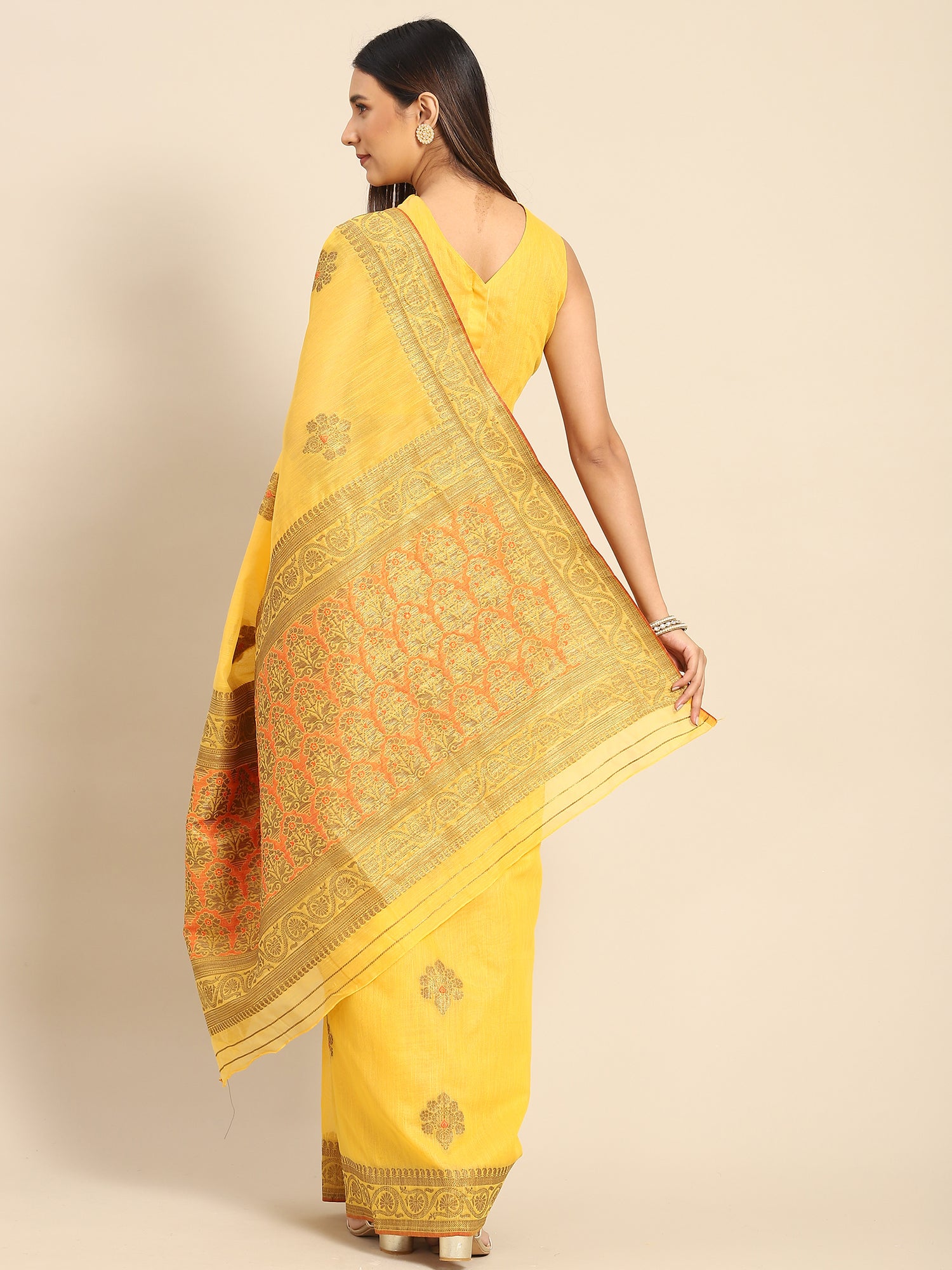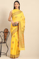 Women's Silk Blend Yellow Woven Design Designer Saree With Blouse Piece
